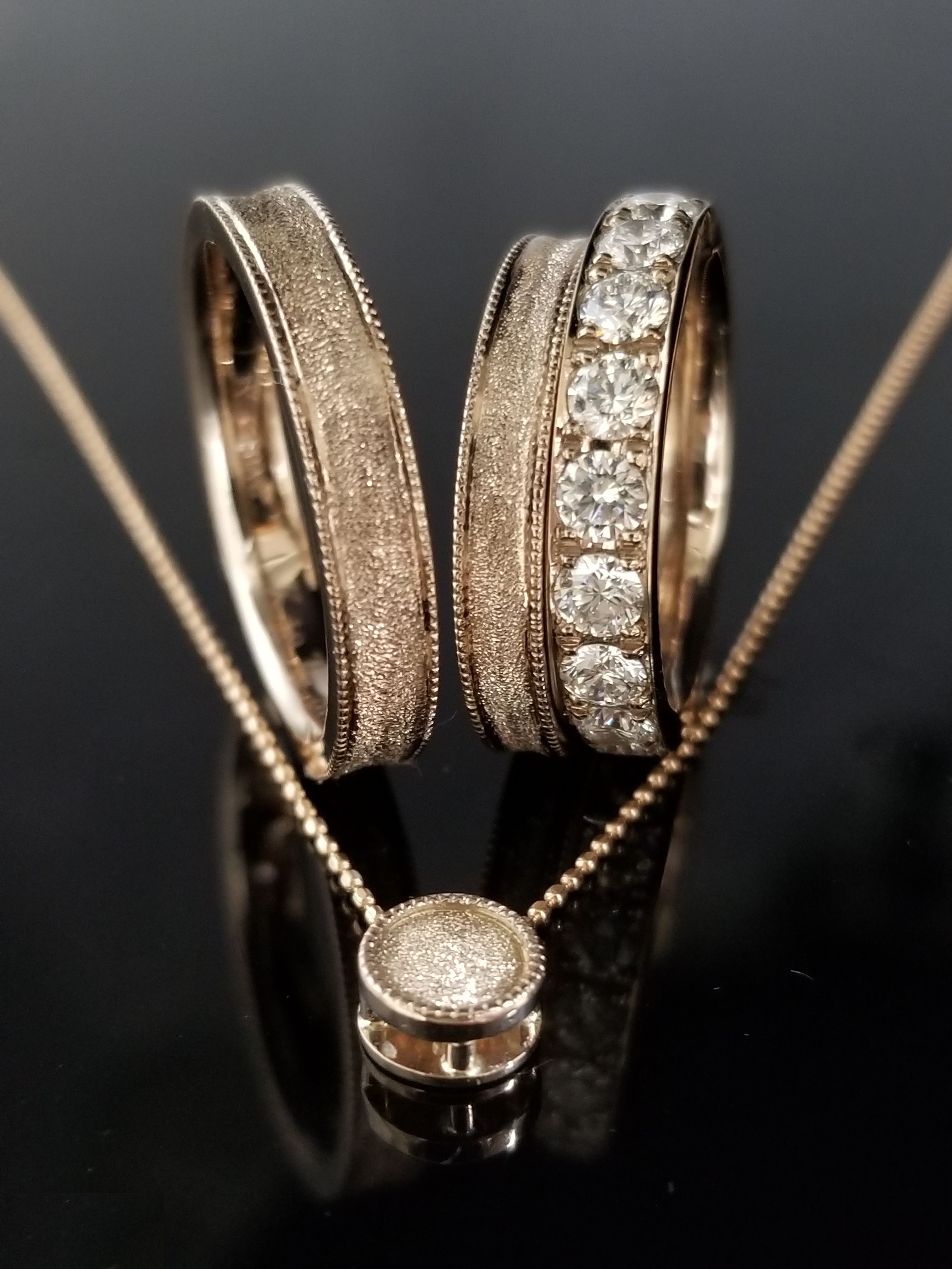 ネックレスも結婚指輪と同じデザインに仕上げ、世界にたった一つの特別な物に仕上げました。