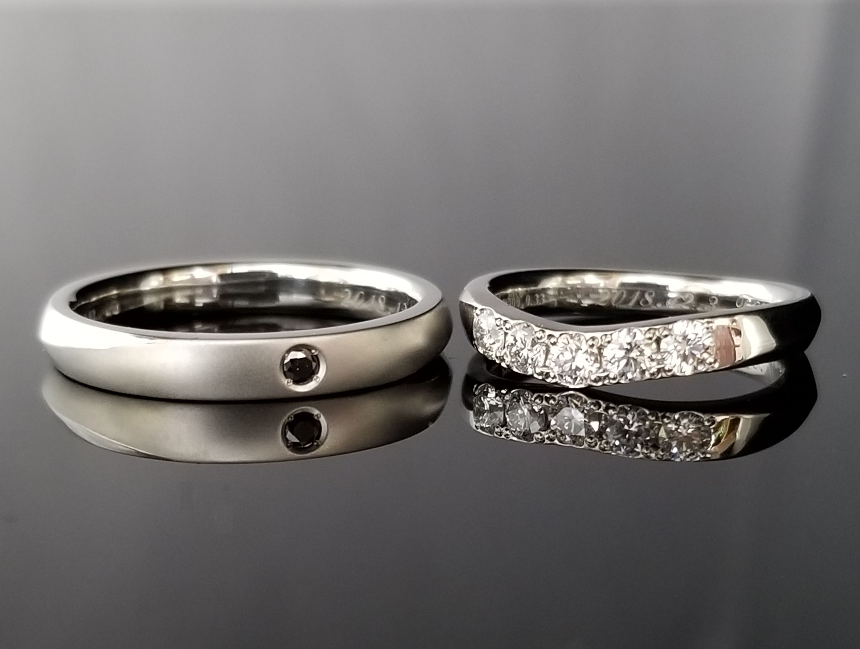 TANZO.(鍛造指輪) 結婚指輪 結婚指輪の作品集 面取りで統一感のある結婚指輪 面取りで統一感のある結婚指輪 永遠の輝きのあるプラチナを使用した結婚指輪。面取り加工でおそろに仕上げ、統一感あふれるデザインに。 男性は仕事運UPの意味を持つブラックダイヤモンドを、女性はダイヤモンドで華やかでゴージャスに仕上げました。 素材 プラチナ 石 ダイヤモンド 分類 オーダーメイド 価格男性用 185,000 価格女性用 220,000 ※素材、幅、サイズ、ダイヤの個数、地金重量、追加加工等のデザインによって価格が変わります。※地金相場の変動に伴い、予告なく価格の改訂をさせて頂くことがございます。※表記は税抜き価格です。 店舗のご案内 来店予約 前の商品へ 一覧へ戻る 次の商品へ Recommendation 同じ素材を使用したおすすめ作品 細かなケガキ彫りが美しい丈夫で滑らかな鍛造リング T9838 梨地加工とスターダスト加工で個性を出して素敵に T10296 斜めに入れたヘアラインとダイヤモンドがアクセント T9922 素材はそれぞれお好みのものをお選びいただきました T10212 マット加工やダイヤモンドを交互にあしらい遊び心をプラスしました T10458 Recommendation 同じ石を使用したおすすめ作品 ヘアラインとスターダストで個性を出しました。 T10098 牛とねずみの刻印 T10384 槌目の大きさにこだわった鍛造マリッジリング T10198 表面加工にこだわり、さり気ない輝きをプラスして T9970 職人の手作業による岩加工が光るリングが完成しました T10308 Recommendation 同じ価格帯のおすすめ作品 ぷっくりとしたピンクゴールドが目を惹くデザイン T10405 プラチナにイエローゴールドのお色を合わせて。 T10229 お二人のこだわりを詰め込んだ素敵なマリッジリング T10049 こだわりを詰め込んだ全周カット彫り T10174 こだわりを詰め込んだ素敵なリングとなりました T10274 Recommendation 同じ条件で他の作品を探す オーダーメイド プラチナクラシックエレガントウェーブ面取り・えぐり鏡面マット・ヘアライン1本約15万円~20万円1本20万円以上