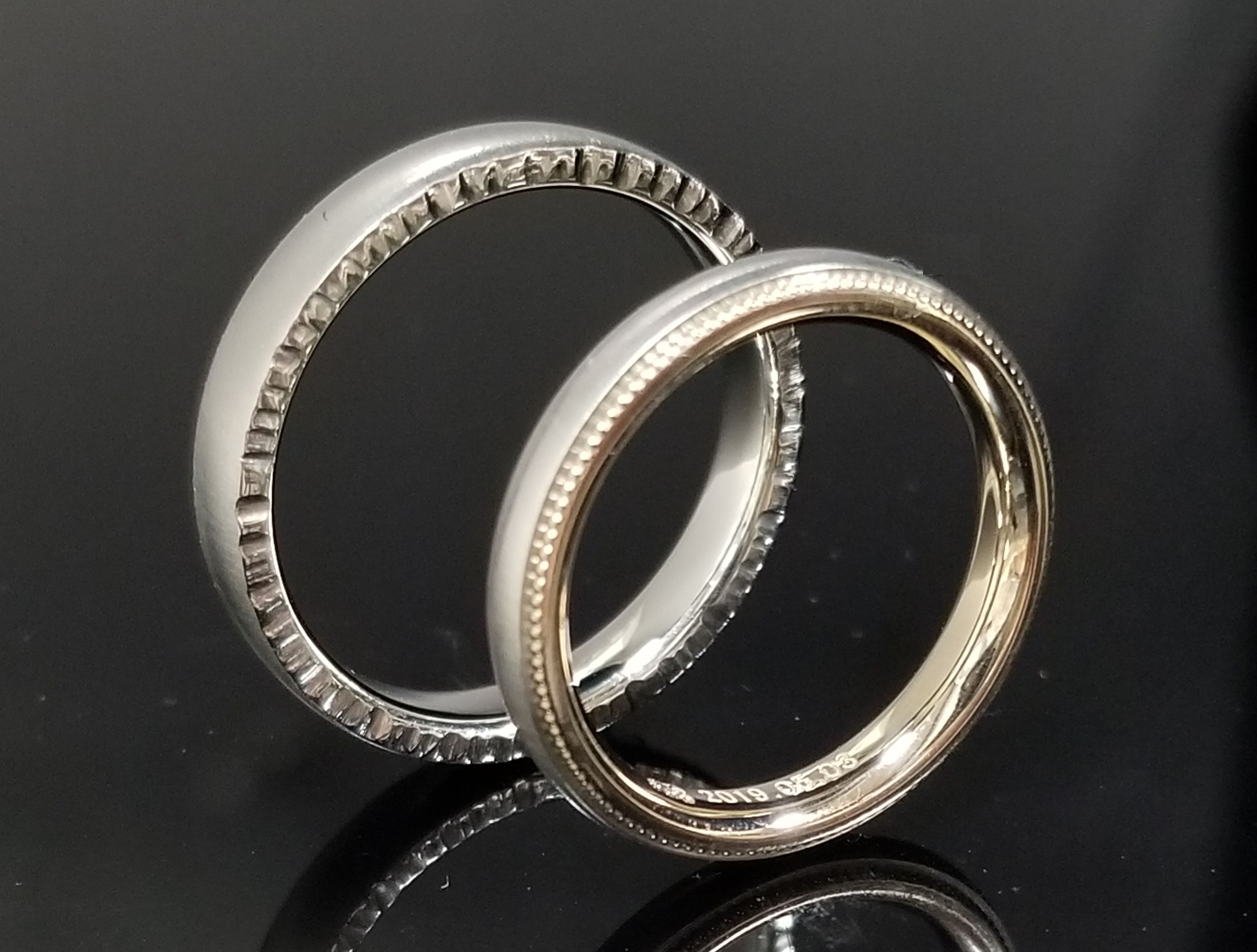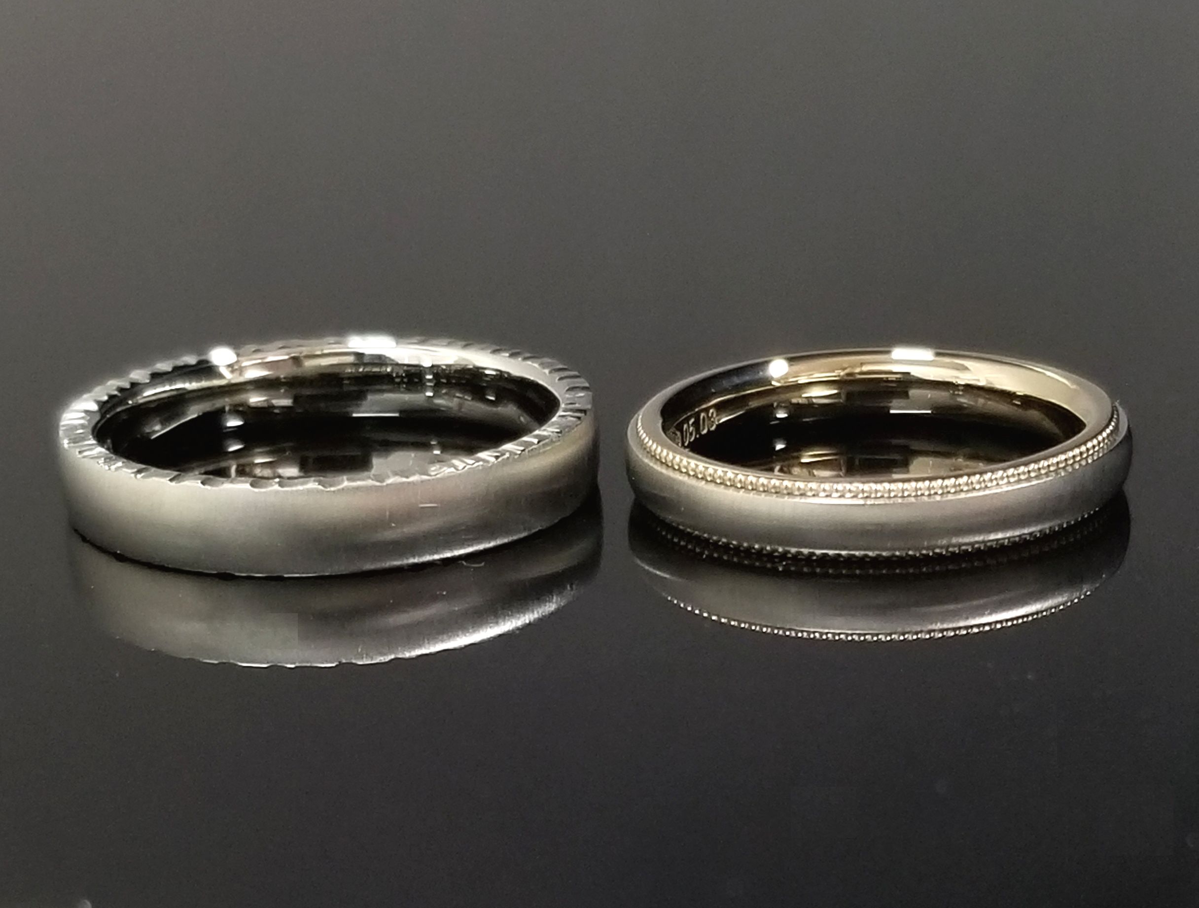 2本ともプラチナには縦ヘアラインを施し、シックな印象に仕上げました。