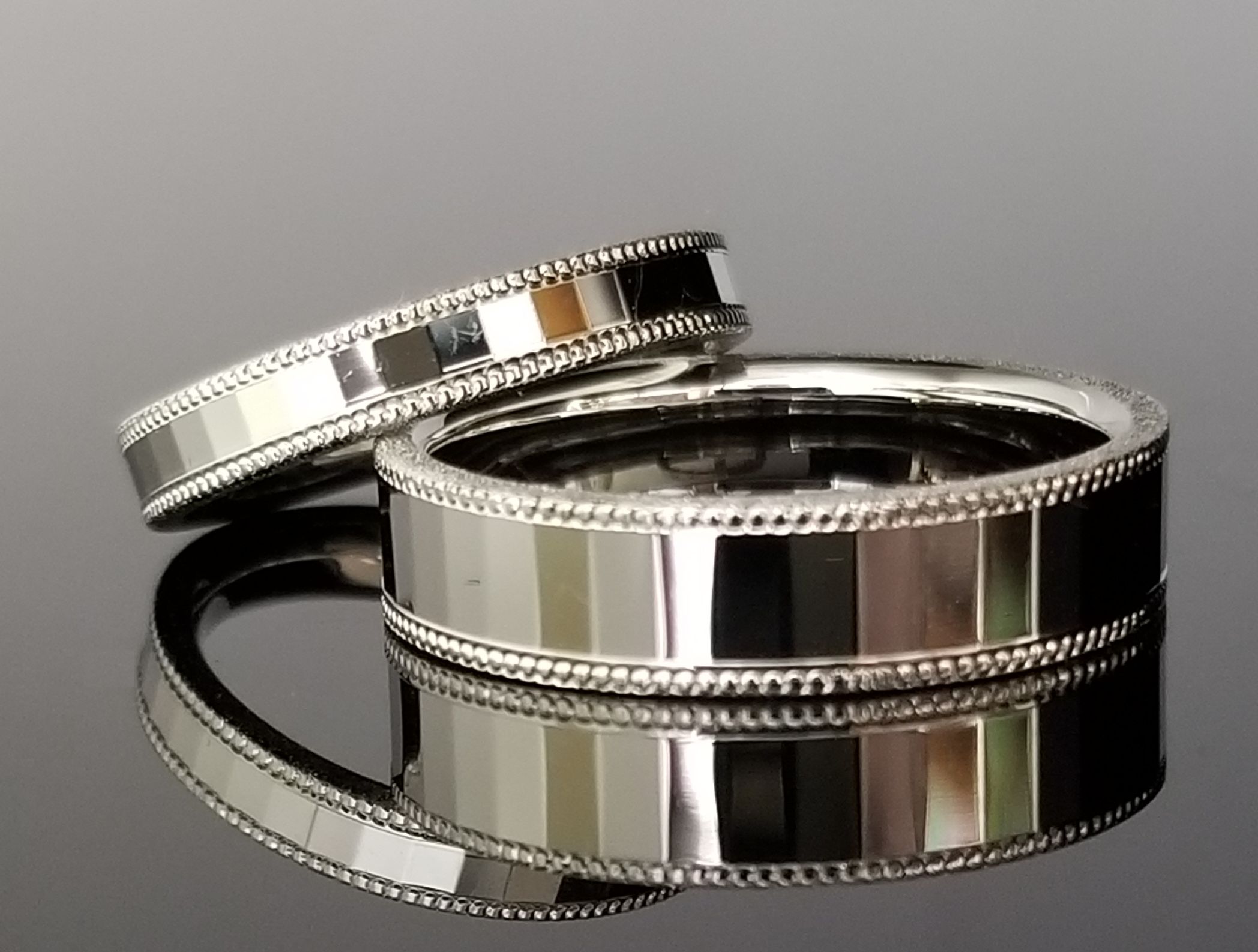 TANZO.(鍛造指輪) 結婚指輪 結婚指輪の作品集 どこの角度から見ても美しく光るマリッジリング どこの角度から見ても美しく光るマリッジリング 平打ちストレートの形状に特殊な表面加工で、どの角度から見ても光り輝く美しいデザインに。 縁起が良いとされるミル打ちを一周途切れることなく入れ、さらにはスターダストで華やかなデザインに仕上げいます。 素材 プラチナ 石 ダイヤなし 分類 オーダーメイド 価格男性用 155,000 価格女性用 145,000 ※素材、幅、サイズ、ダイヤの個数、地金重量、追加加工等のデザインによって価格が変わります。※地金相場の変動に伴い、予告なく価格の改訂をさせて頂くことがございます。※表記は税抜き価格です。 店舗のご案内 来店予約 前の商品へ 一覧へ戻る 次の商品へ Recommendation 同じ素材を使用したおすすめ作品 ライン加工を境に、お好みの加工を施しました。 T10083 金線や加工の幅を同一にすることでペア感を出しました。 T10035 ひし形と丸型のミルグレイン T10027 溝部分に木目のような加工を施し、温かさをプラスして。 T10299 お好みの色石をあしらってポイントに。 T10375 Recommendation 同じ石を使用したおすすめ作品 おふたりの絆を感じるデザインに仕上がりました T9968 お二人の似顔絵をお入れした一生モノの指輪です T10453 平打ちのフォルムでスタイリッシュな印象に仕上げました T10197 おふたりにだけ分かる素敵な暗号を内側に。 T10469 ひし形のカットのにより、お手元が動くたびにキラキラと上品に輝きます T9994 Recommendation 同じ価格帯のおすすめ作品 K18シャンパンゴールドにミルを施しました。 T10095 槌目加工をお好みのテクスチャーで仕上げました T10284 お好みデザインを正面に。裏面は揃えてお揃い感のある指輪に。 T10220 下部分に丸みを加えて柔らかな印象に。 T10191 お揃いのフォルムでご結婚指輪らしいペア感を。 T10018 Recommendation 同じ条件で他の作品を探す オーダーメイド プラチナシンプルクラシックライン・ミル打ち鏡面あらし・スターダスト・他1本約10万円~15万円1本約15万円~20万円