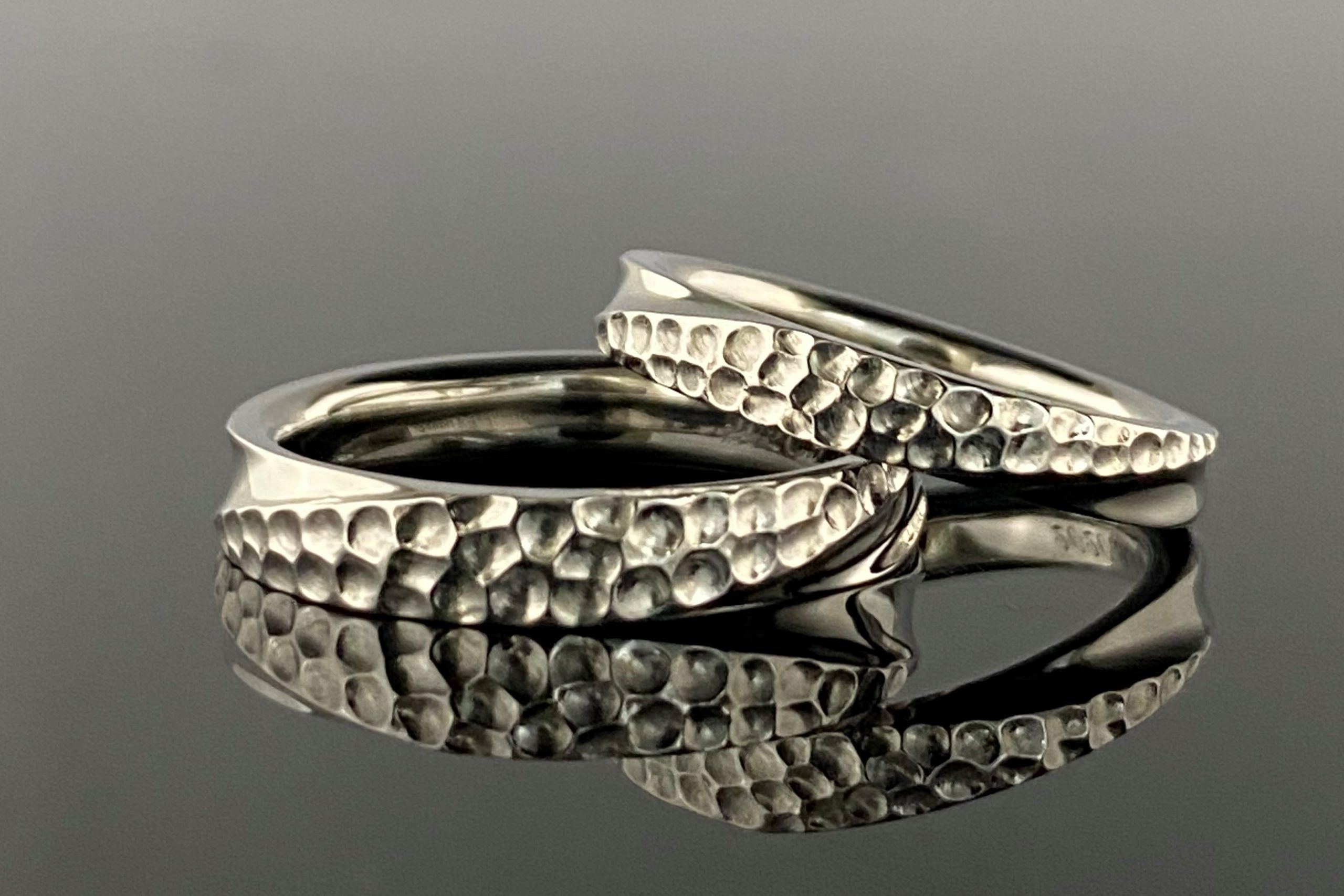槌目の一つ一つを深めにお入れすることで、力強い印象のデザインに仕上がります。