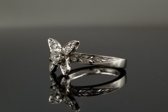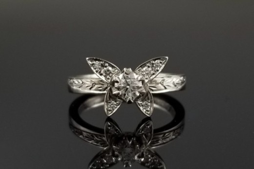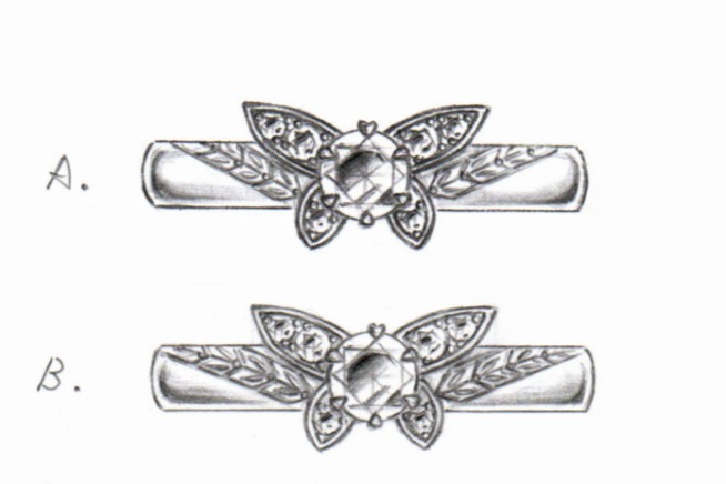 次に、奥様ご希望のご婚約指輪のデザインは、「蝶々」と「月桂樹」。