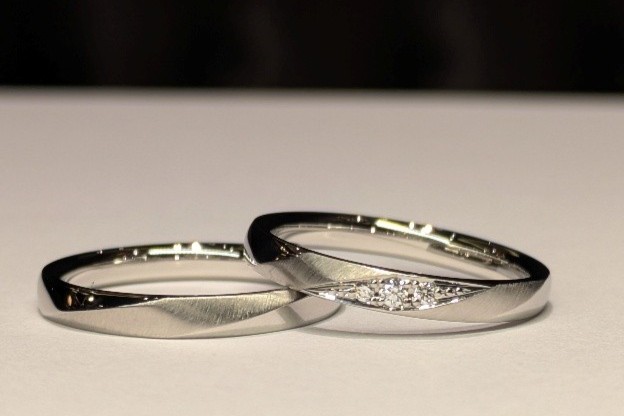 今回は、お互いのお好みを取り入れ合ったデザインをご提案させていただいたお客様のご結婚指輪をご紹介いたします。