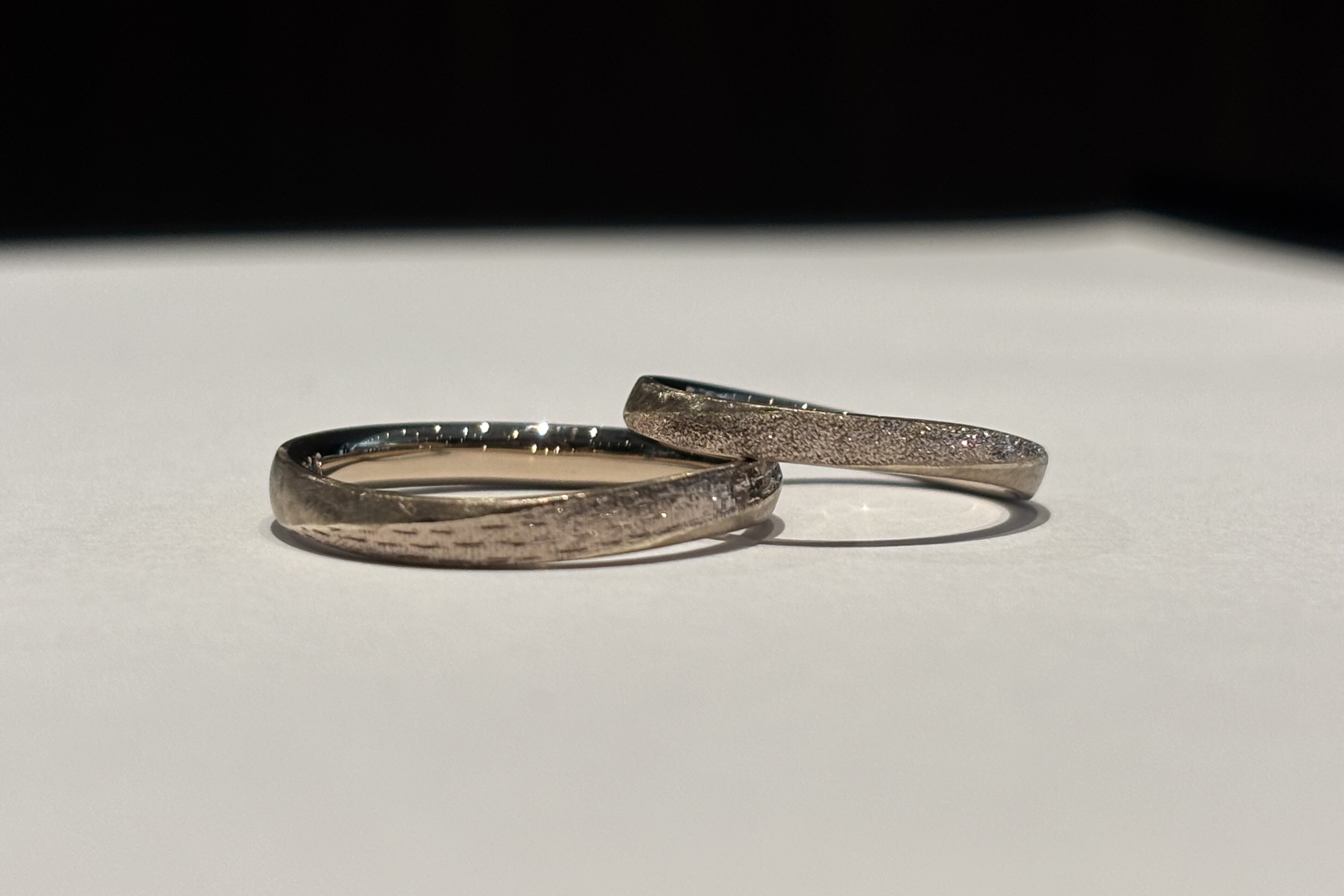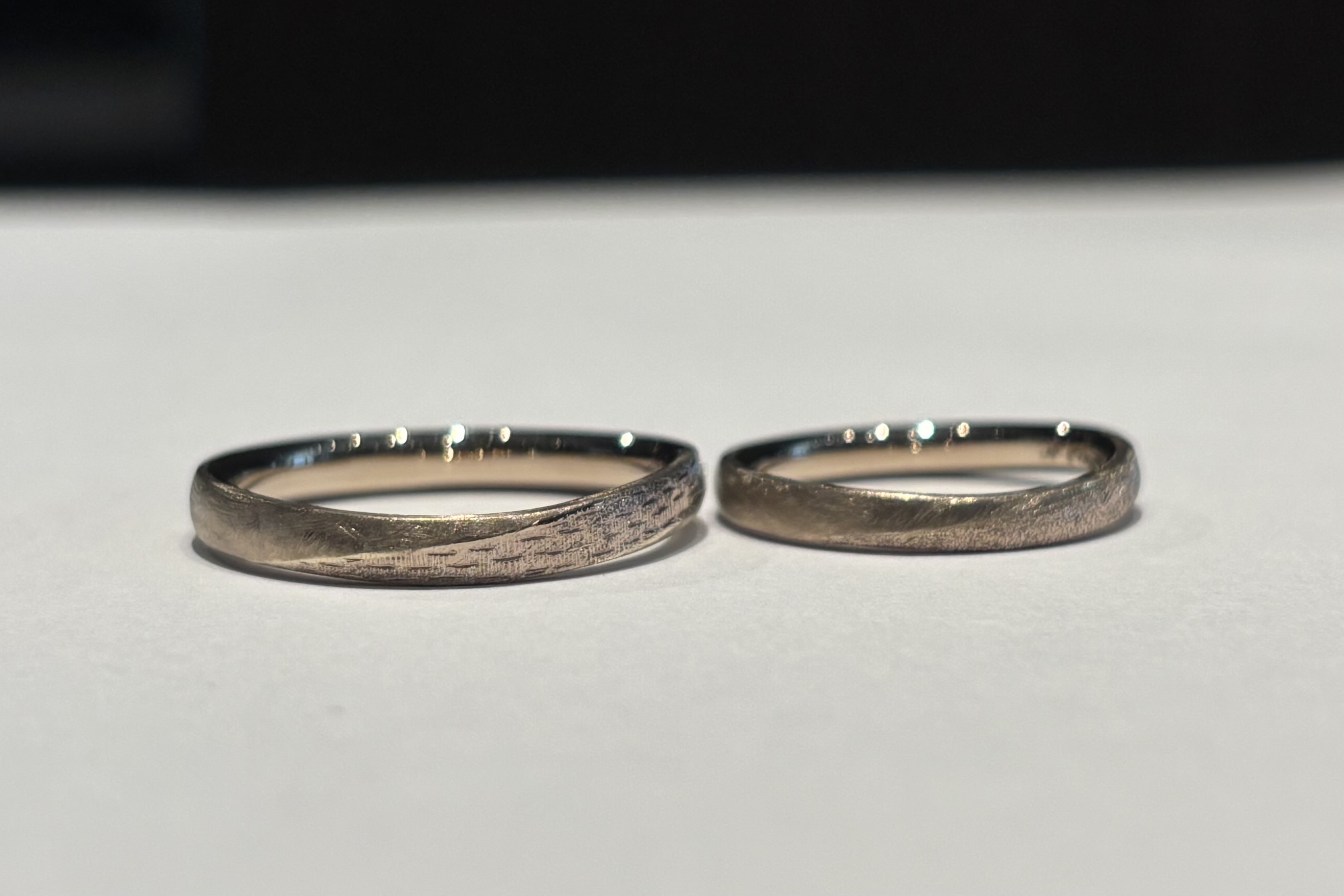 こうして、お二人の様々なお好みを反映していただき、個性溢れる唯一無二のご結婚指輪が完成いたしました。