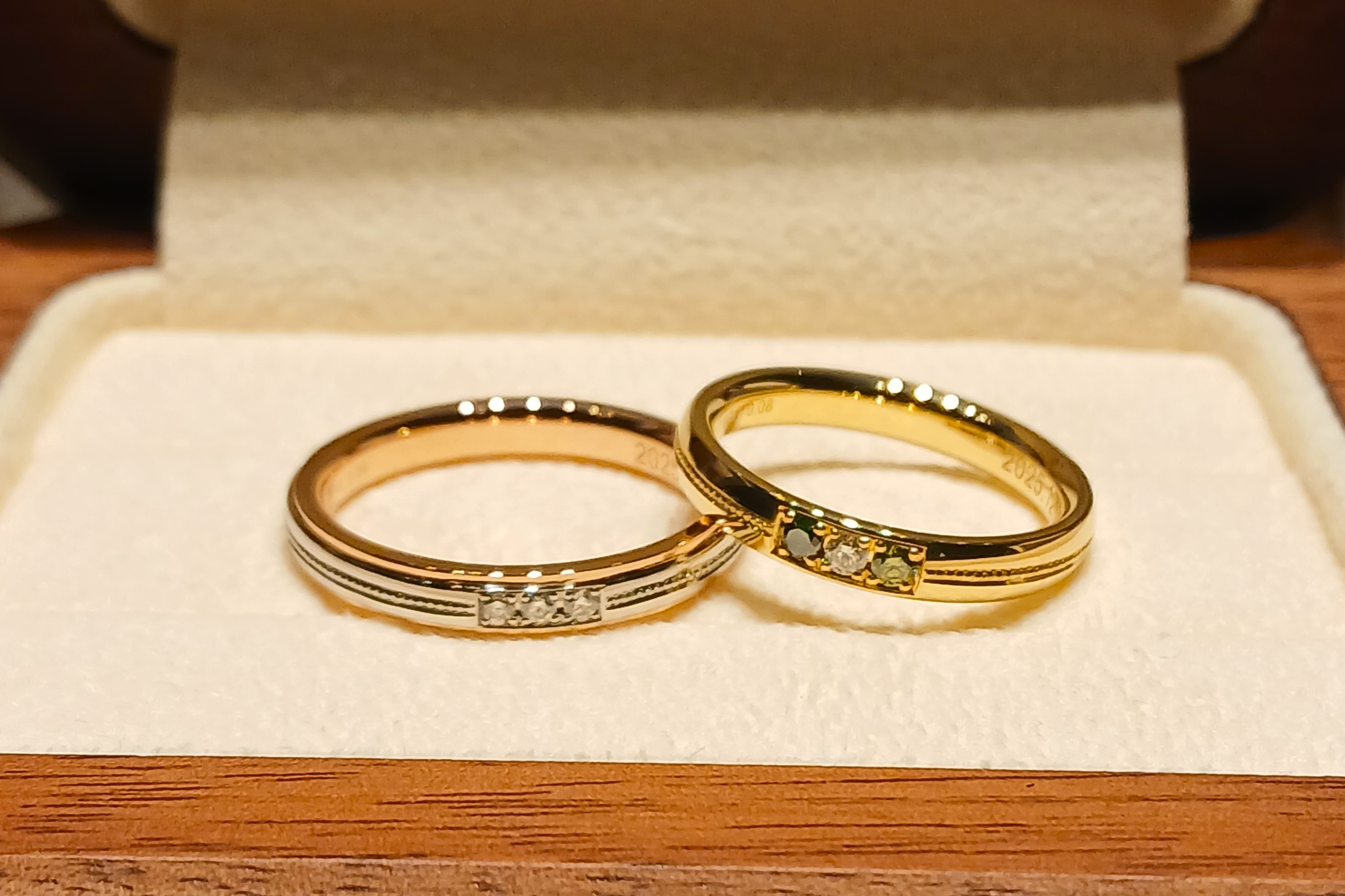 そうして完成したリングは、オリジナリティあふれる、お二人にしかお造りできないリングとなりました。