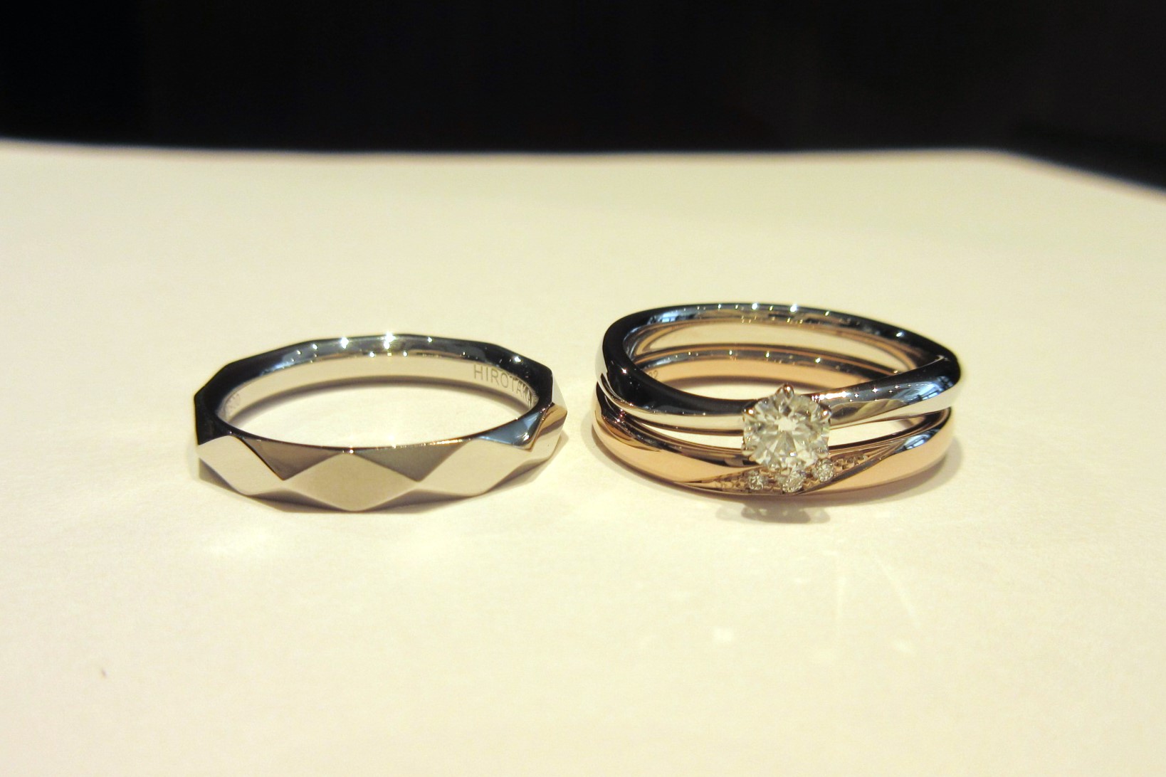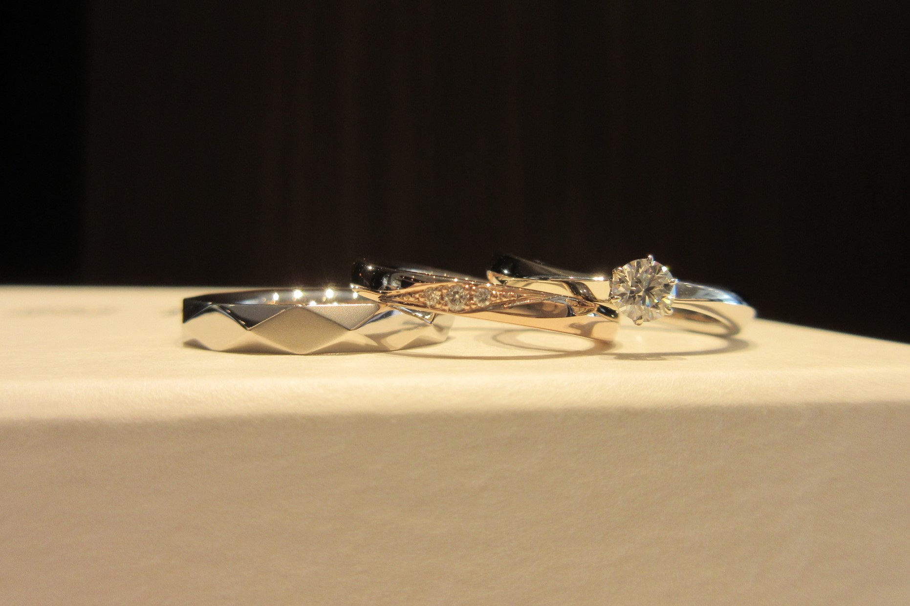 以上、それぞれのお好みを少しずつ渡し合いながら造った、お二人だけの指輪デザインは、一生ものに相応しい妥協ないものとなりました。