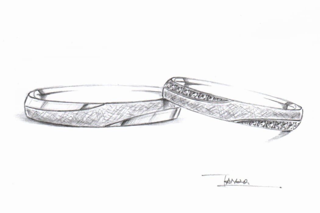 このお二人のように、デザイン画で少しずつイメージしていただきながら、より理想のデザインをお造りいただけるのは、TANZOのオーダーメイドならではでございます。