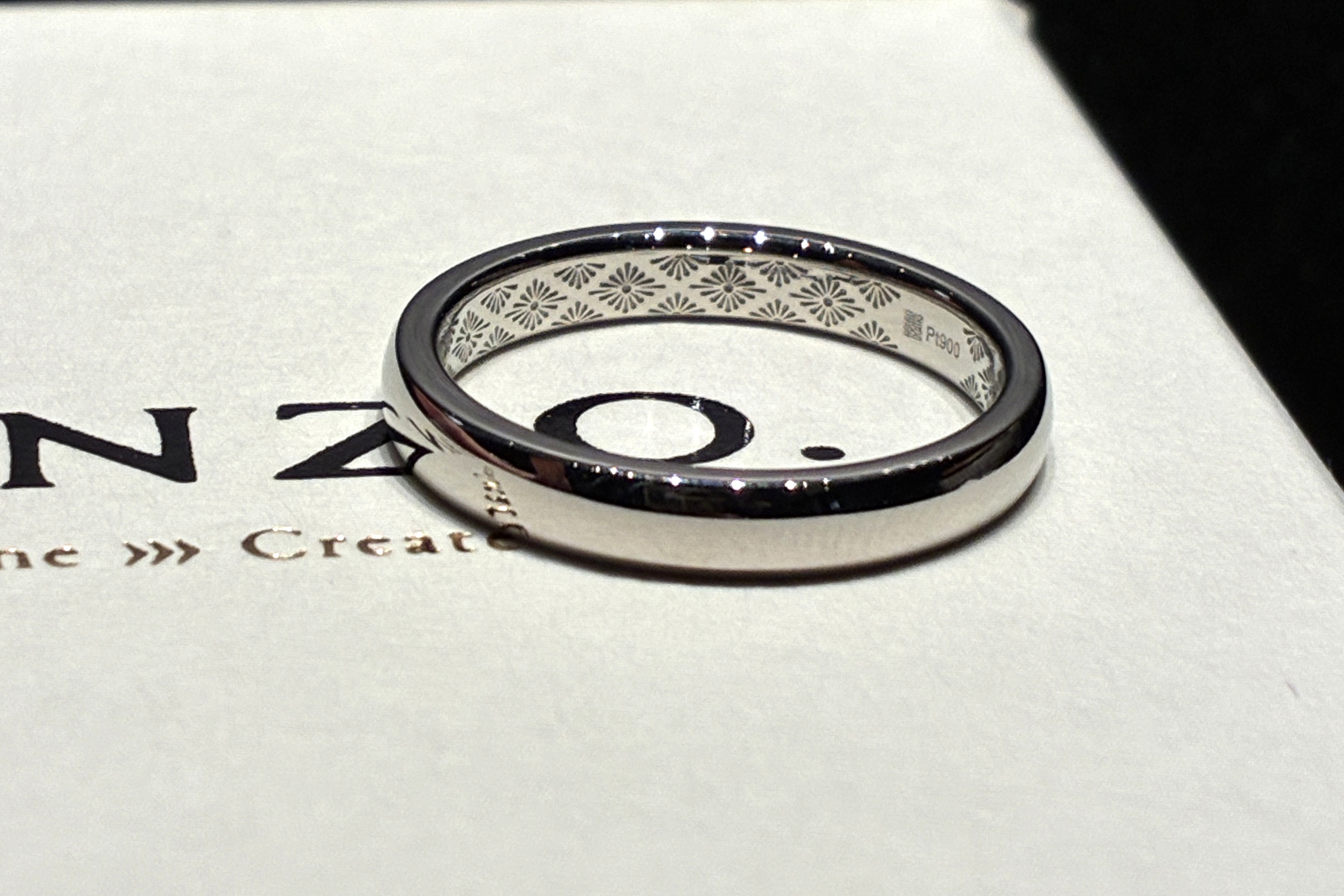 内刻印にこだわる分、指輪自体のデザインはシンプルなものに…とのことでしたので、パッと見たときのデザインはごくごく普通のご結婚指輪となりました。