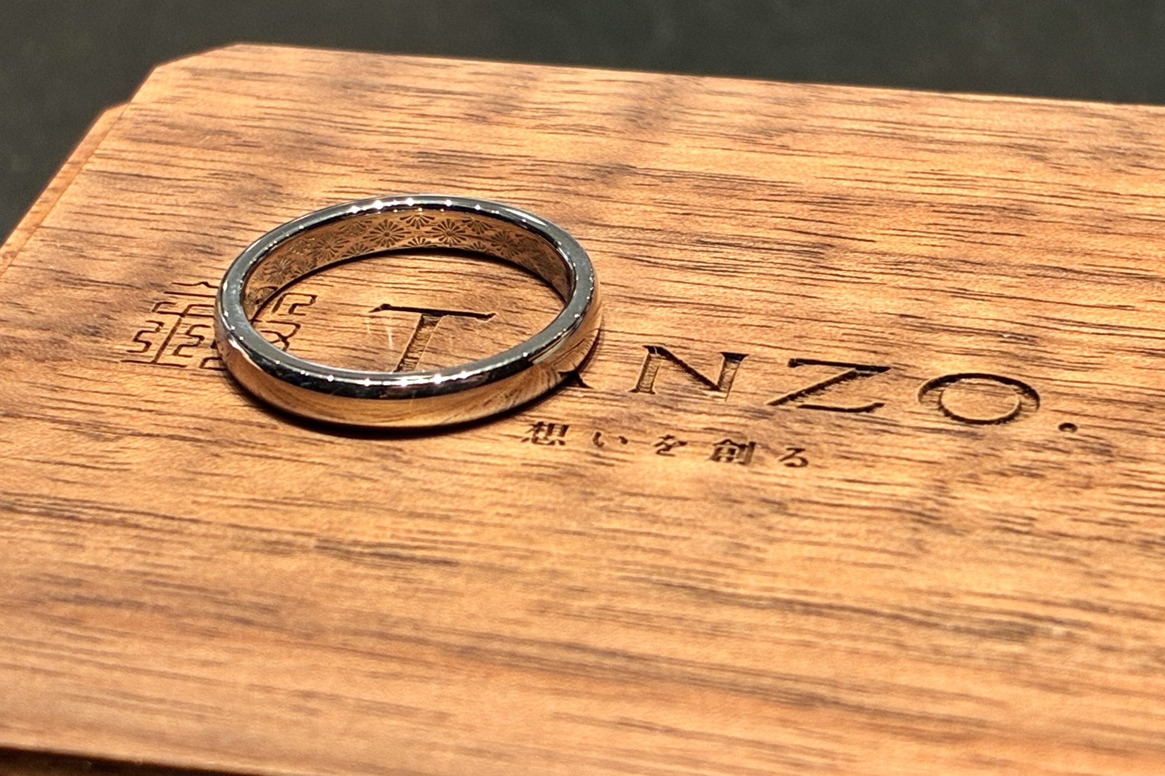 今回のお客様は、はじめに内刻印にこだわりがおありとお話を頂きました。TANZOはレーザー刻印の自由度も高くなっておりますので、プリセットのマークはもちろん、オリジナルの刻印をお造りして打刻することも可能でございます!