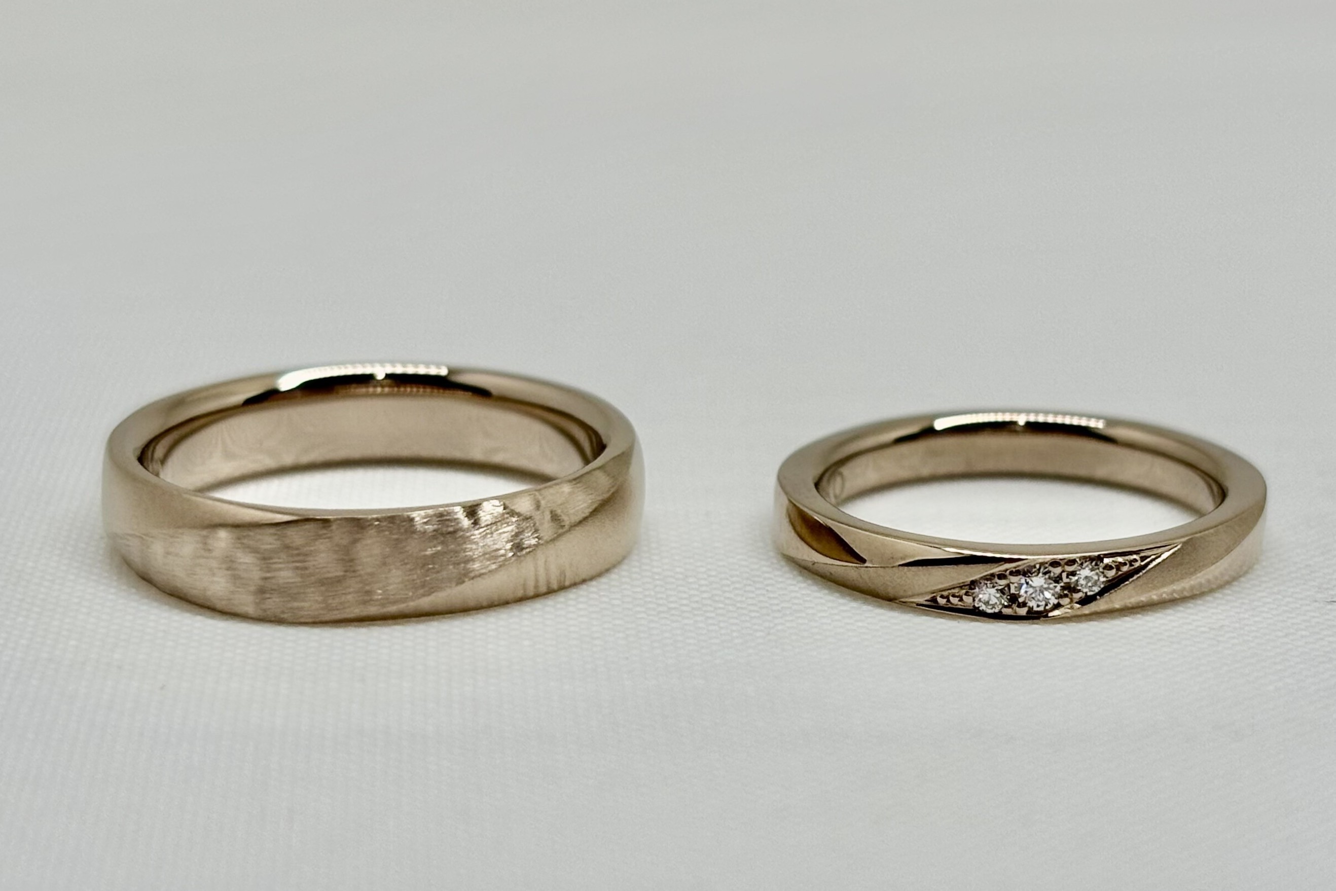 それぞれの個性を大切にしながら、同じ未来へと歩んでいくお二人の関係性を、この結婚指輪が静かに映し出しているようですね。