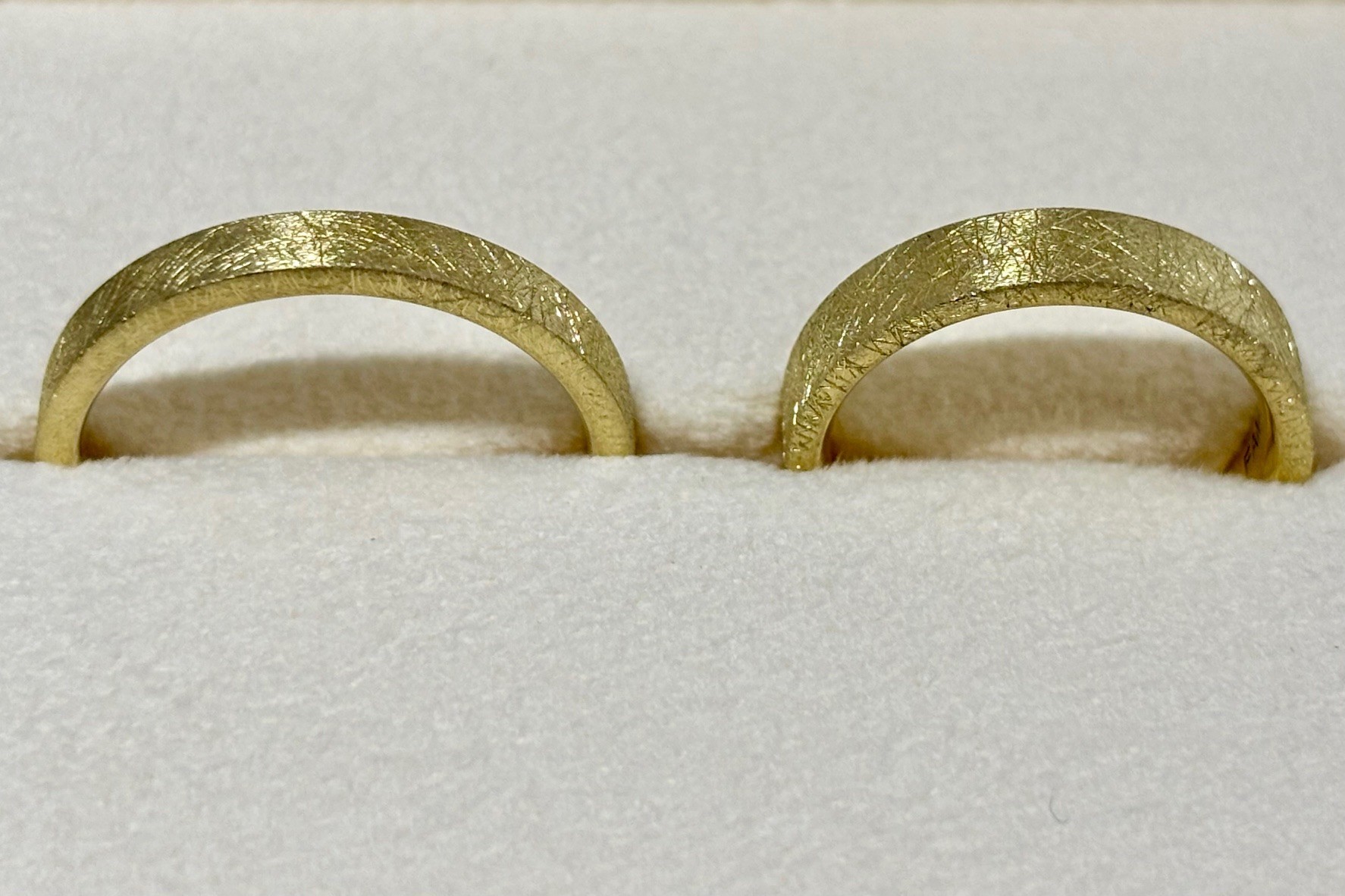 既製品ではなかなか出会えない組み合わせだからこそ、より一層愛着を持って身に着けていただけるご結婚指輪になりました。