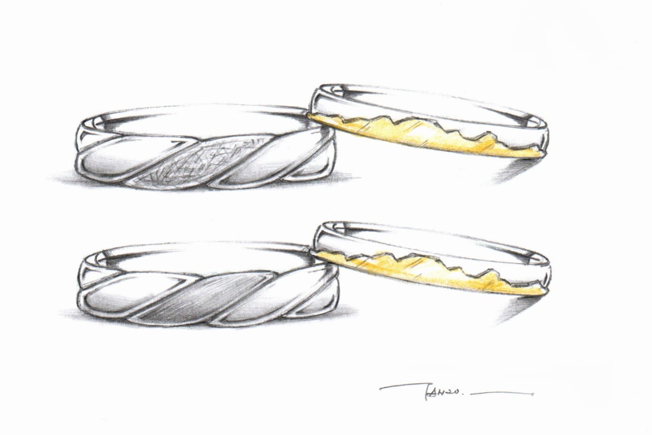今回のお二人は、「アウトドアが趣味なのでとにかく丈夫な指輪を、そして自分たちらしい唯一無二の指輪が造りたいんです!」とのことでTANZOにご来店頂きました。
