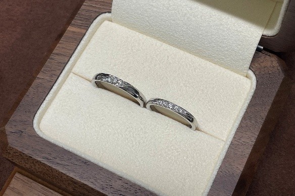 ご納品時には、ケースを開いた瞬間にとても喜んでくださり、お二人だけの素敵なお揃いの指輪をお手伝いさせていただいたこと、とても光栄に思いました。