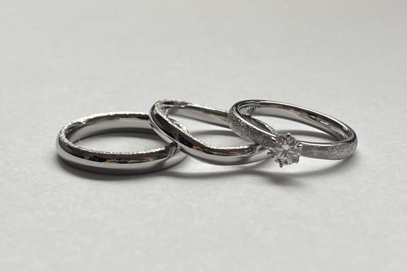 3本お揃い感抜群の、お二人の想いの込められた素敵なご結婚指輪も完成いたしました。