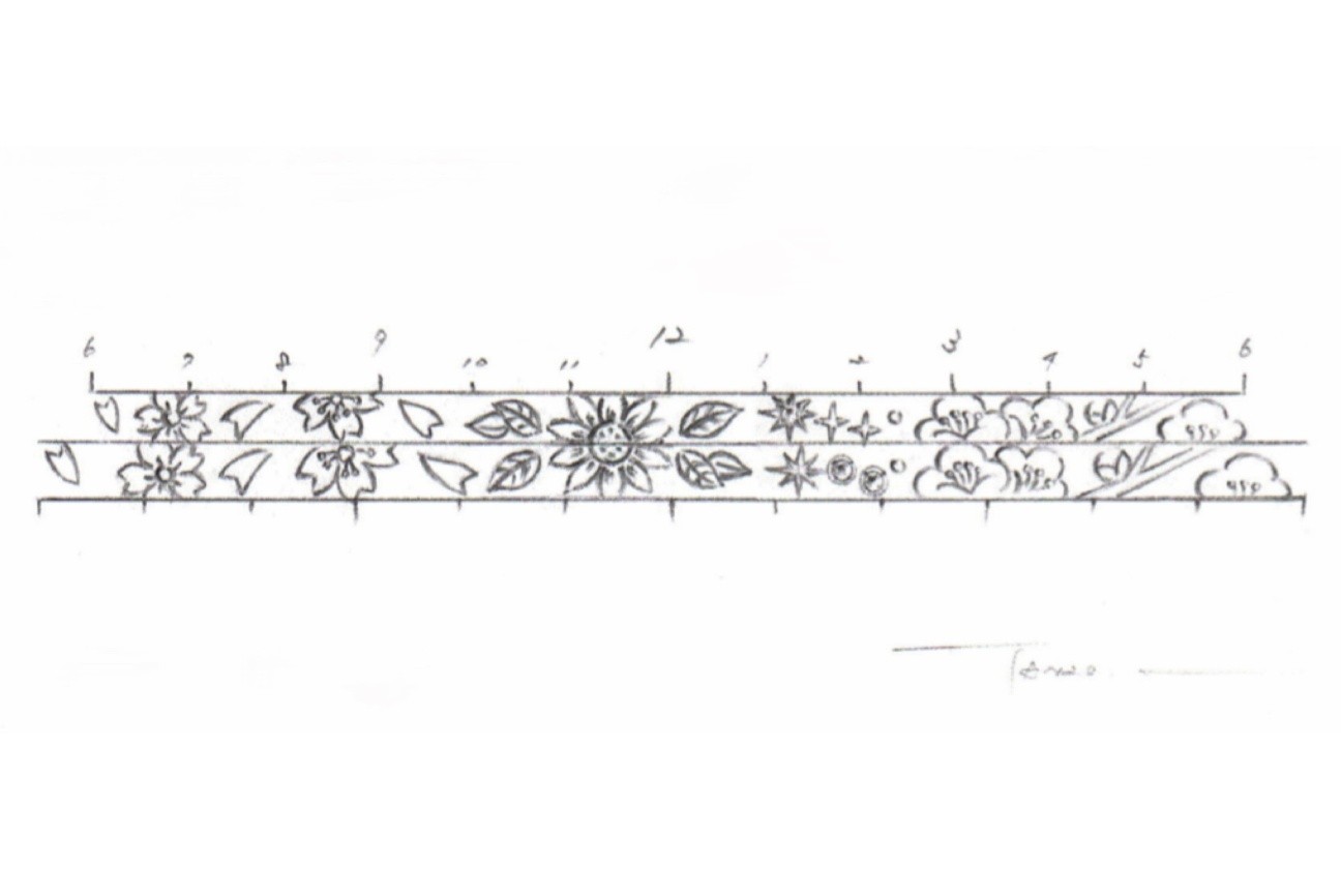 お二人のお付き合い記念日がある4月を表す桜、そして夏生まれのお二人は誕生日が二日違いだそうで、なんと生まれ年も同じだそうです!夏を象徴するデザインとしてひまわりを入れることに。