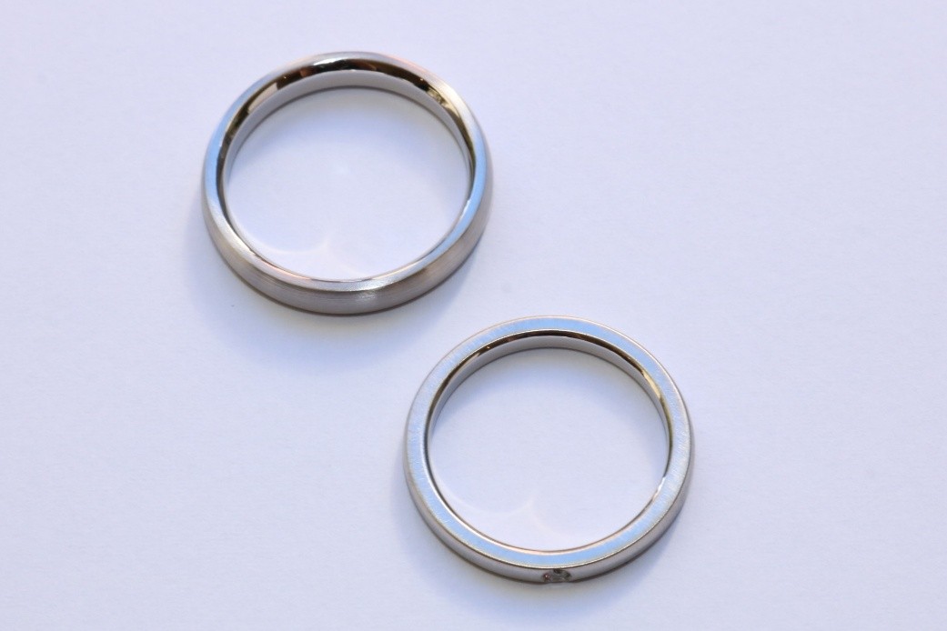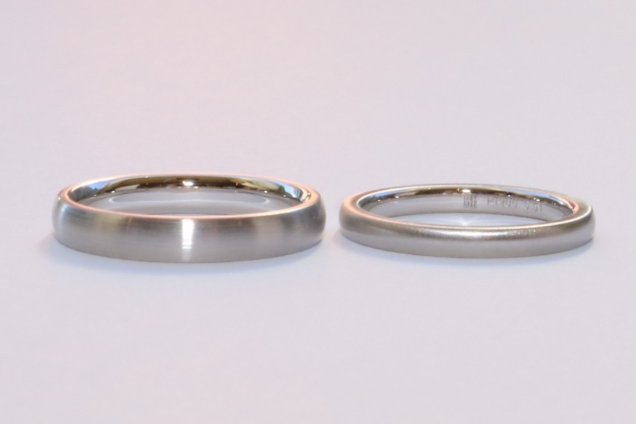 ご結婚指輪のデザインのご希望をお伺いすると、奥様は幅が細くてぷっくりしたツヤ消しのデザインをお探しでございました。