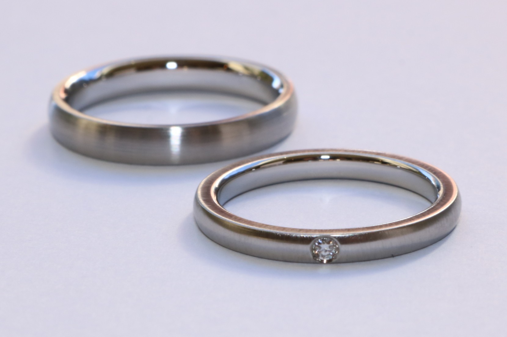 奥様は「じゃあ私は2.0mm幅の甲丸にして、ヘアライン縦を入れるのが1番良さそう!」と、早速サンプルをお手に取って見比べて頂き、ご決定頂きました。