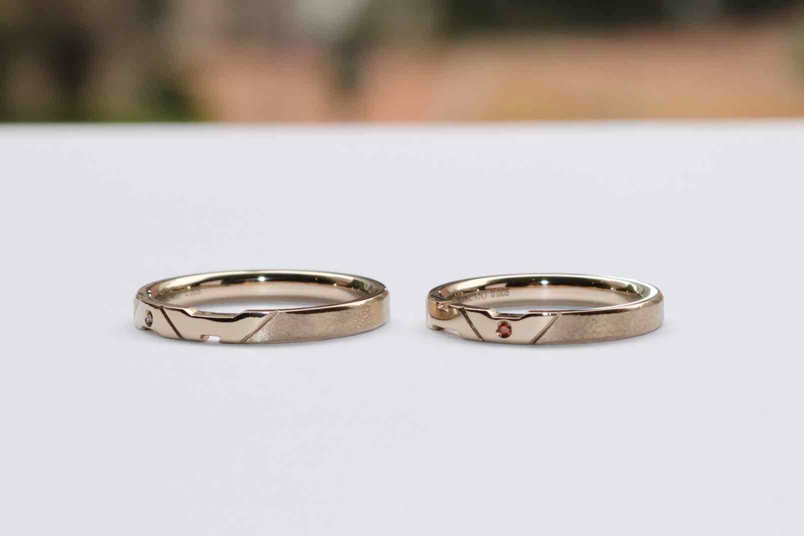 お二人の素敵な案を全て採用し、唯一無二の特別なご結婚指輪が完成いたしました!