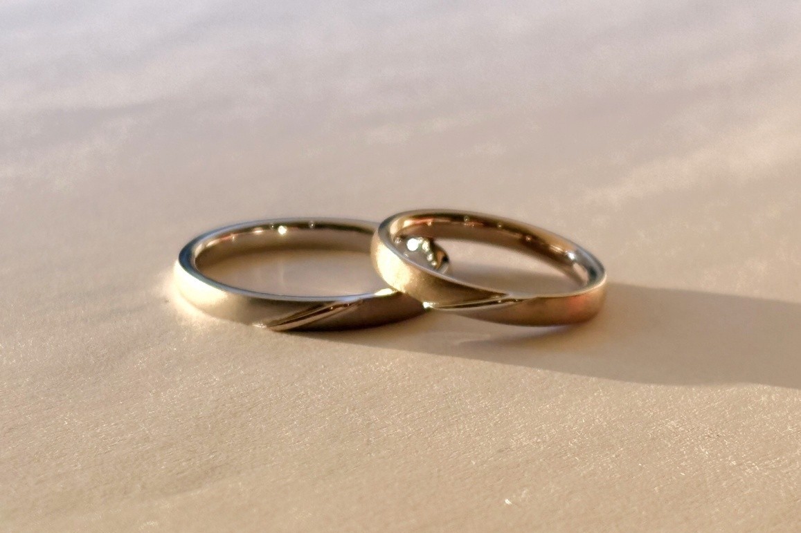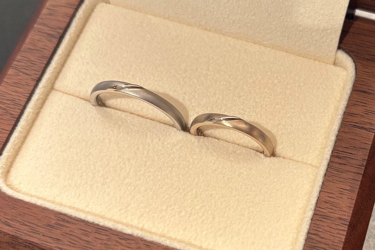 ご結婚指輪をお探しのお二人は、2色のデザインが良いと、あらかじめデザインのご相談をされてからご来店くださいました。