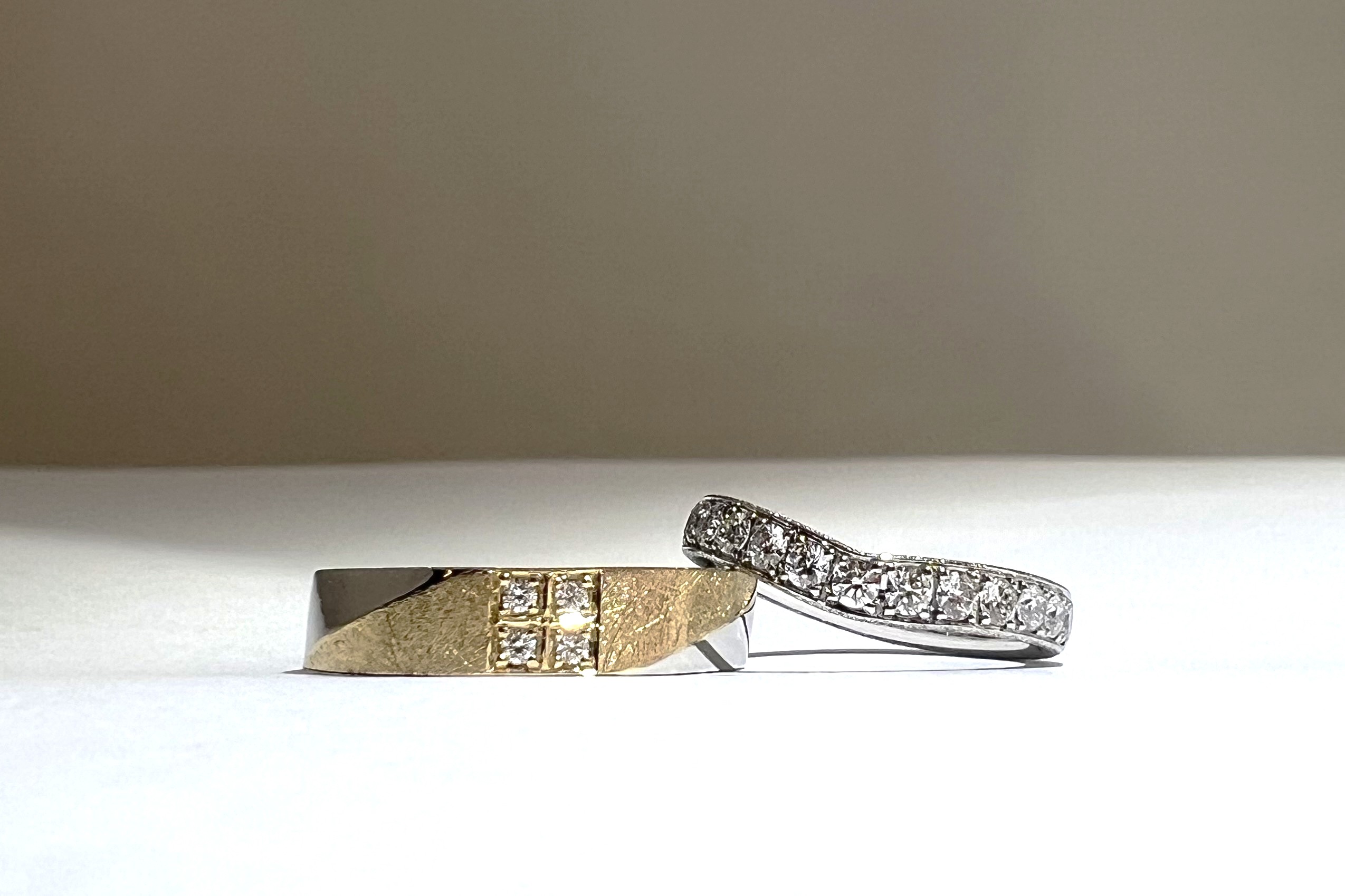 クリエイティブなお二人は、指輪のデザインもとってもこだわってくださり、大変素敵にお仕上がりいたしました。