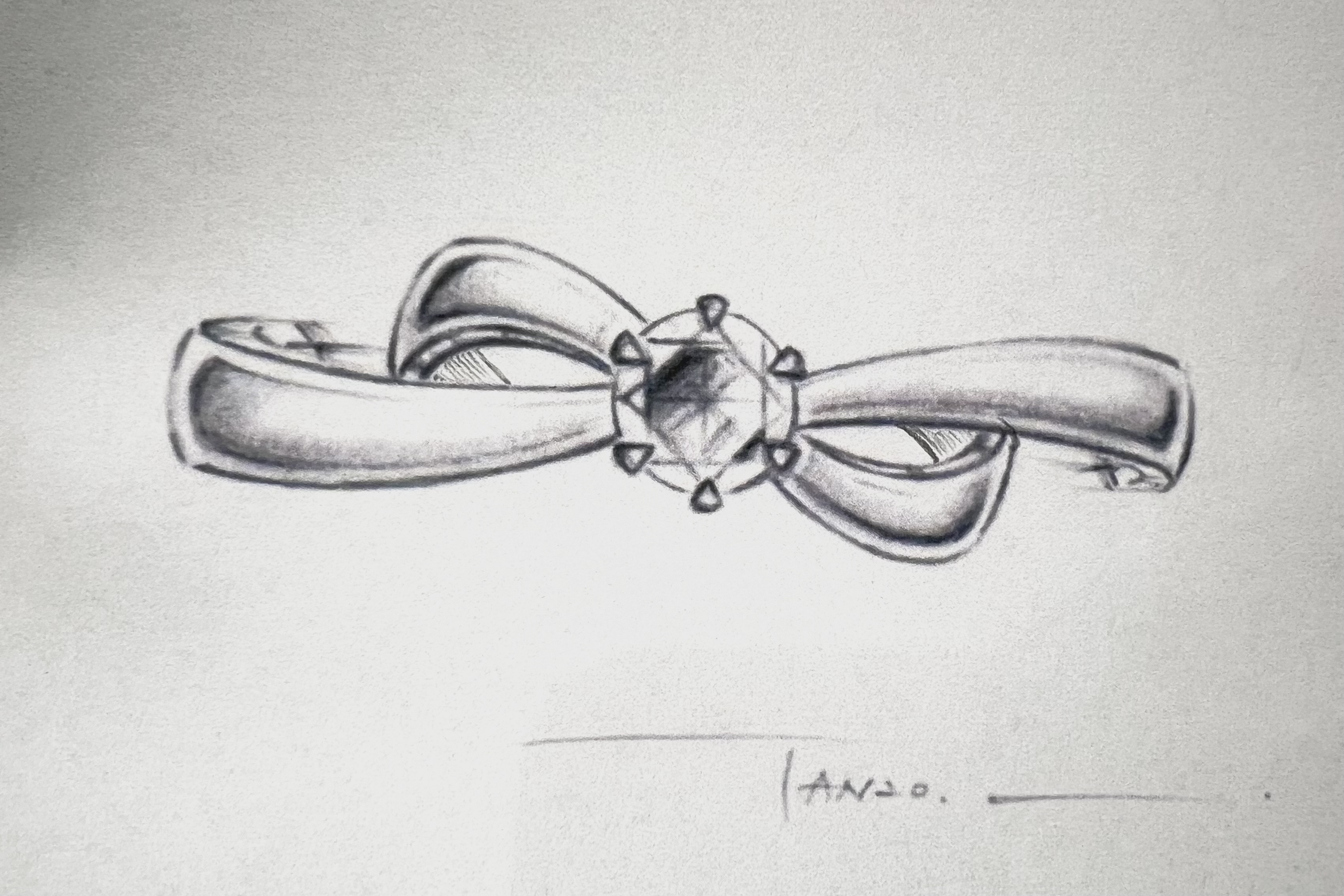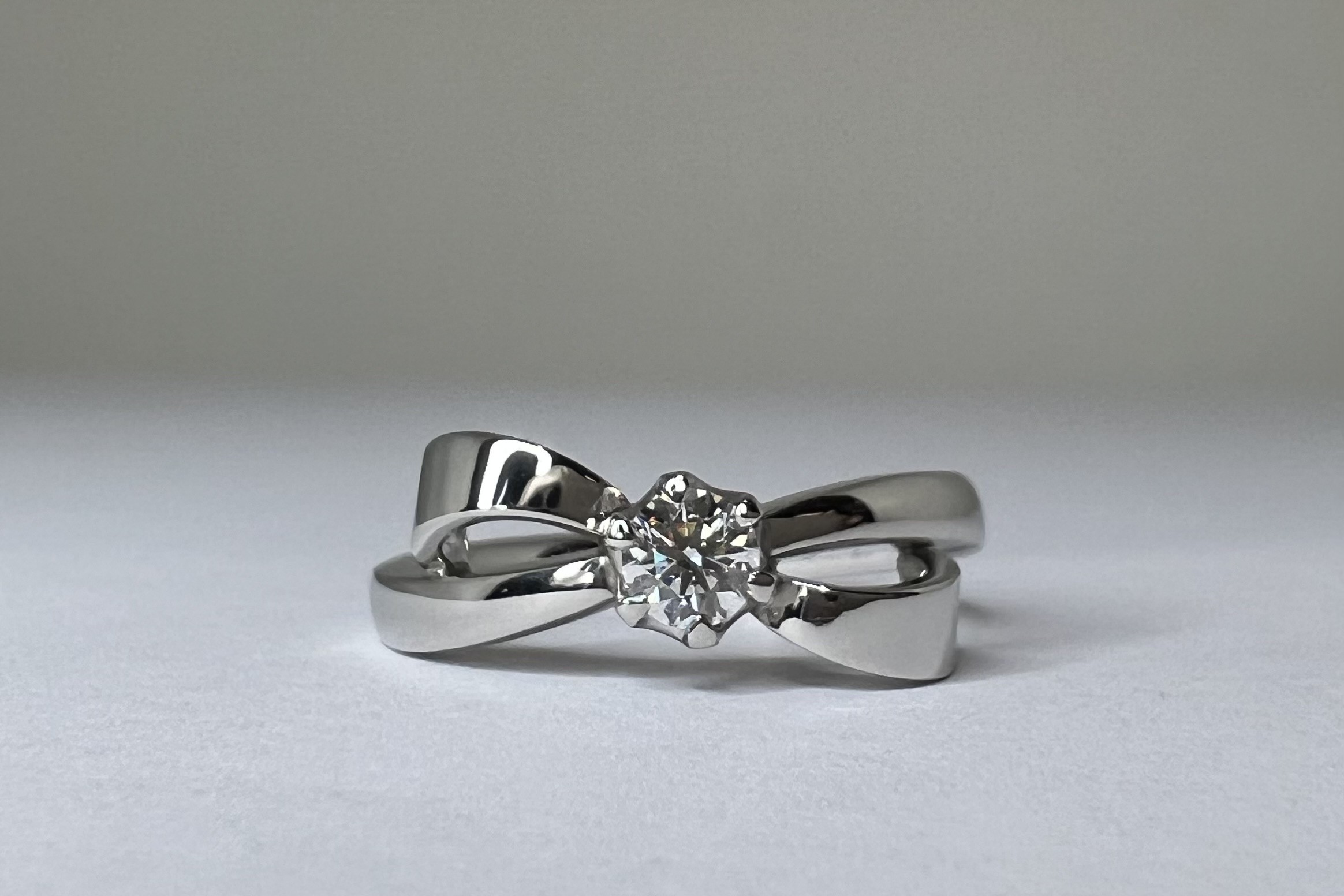 ご婚約指輪にリボンのモチーフを取り入れることで、結ばれたお二人の固い絆を表現しております!